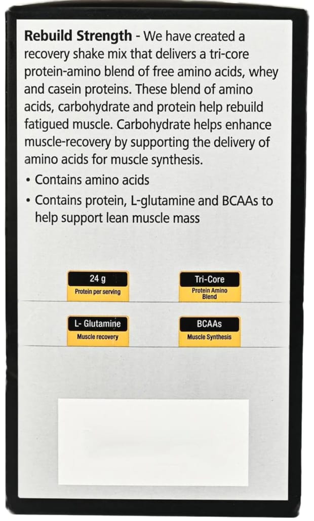 - High Protein Formula: Each serving provides 24g of protein from whey and casein sources. This dual release mechanism offers both fast and sustained protein delivery to muscles, helping to rebuild and support lean muscle mass after strenuous workouts.
